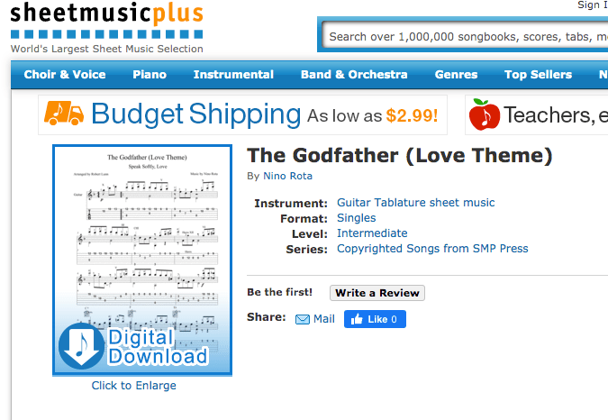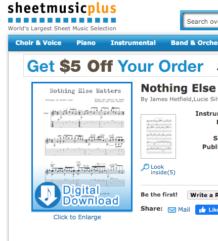 Sheet music/tabs are available from Sheet Music Plus. You can click on the picture to get there.
