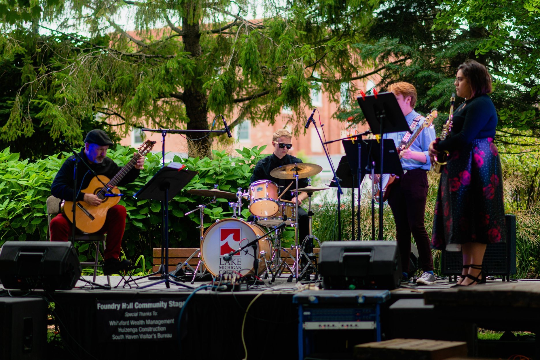 Last weekend I played the South Haven Jazz Festival. My combo was made up of myself and two Lake Michigan College students (where I teach) and my oldest son. It was a blast and the weather was perfect. Here are a few pics from that concert (courtesy of Marissa Hoard)
